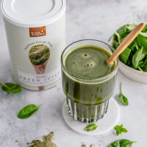 Green Juice bevat een groot deel van je dagelijkse behoeften in één drankje, dankzij de unieke biologische mix van 30 groenten, fruit en superfoods. Start je dag vol vertrouwen en gezondheid met een glas Green Juice op een nuchtere maag.