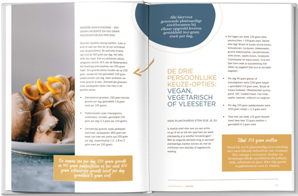 En er staan 33 recepten in, met weliswaar plantaardige eiwitrijke recepten.