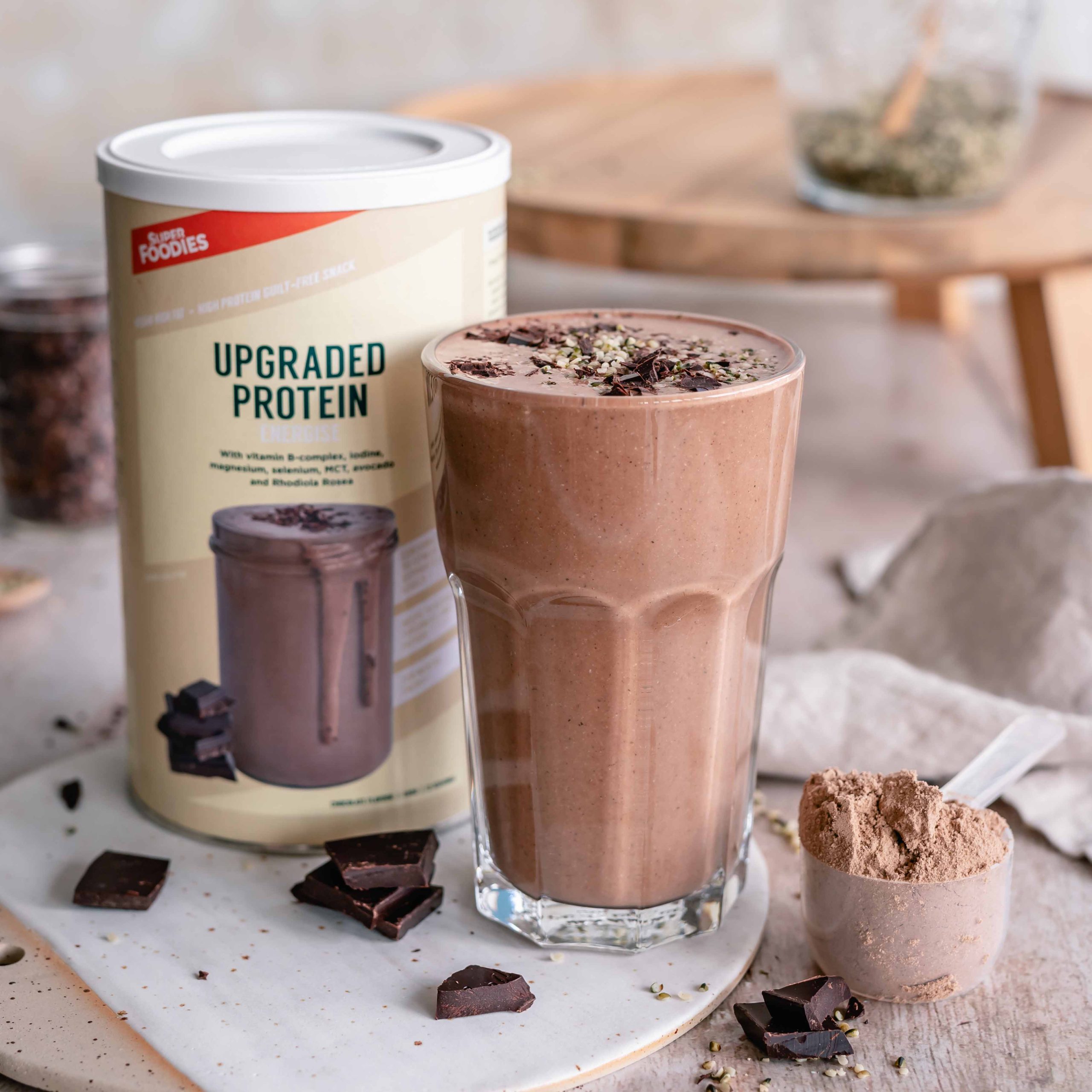 Of maak een smoothie met Upgraded Protein.