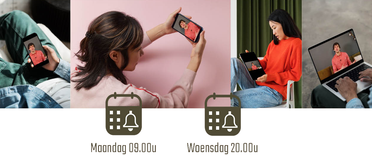 Daarbij ontvang je tijdens het traject je wekelijks 2 – 3 nieuwe (inhoudelijke of coaching) video’s.