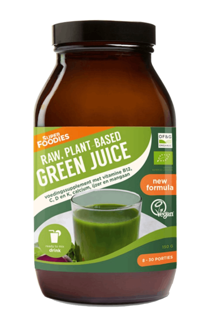 Green Juice bevat een groot deel van je dagelijkse behoeften in één drankje, dankzij de unieke biologische mix van 30 groenten, fruit en superfoods. Start je dag vol vertrouwen en gezondheid met een glas Green Juice op een nuchtere maag.
