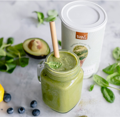 Green Juice is a blend of vegetables, fruits, superfoods, and probiotics that provides everything you need for steady energy, essential nutrients, and a healthy gut. Just add water and enjoy. Just €0.79 per day.