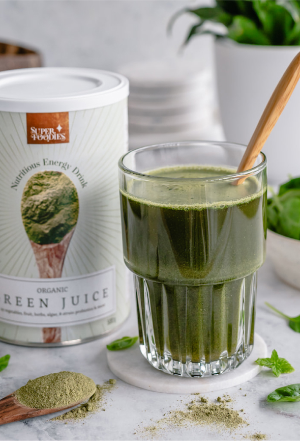 Save on a multivitamin: Green Juice contains a large part of your daily requirement of vitamins & minerals from vegetables, fruit, algae, herbs and superfoods.