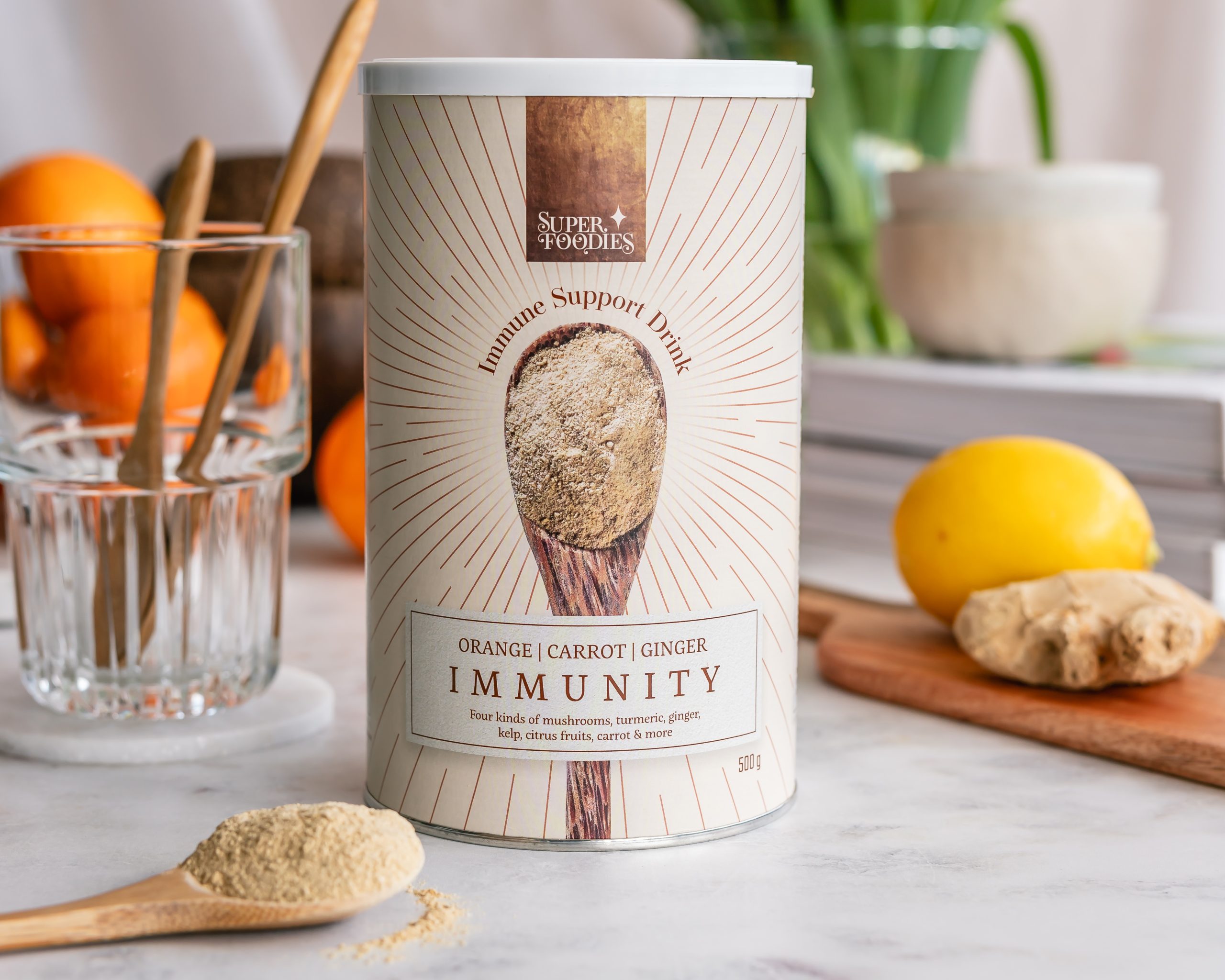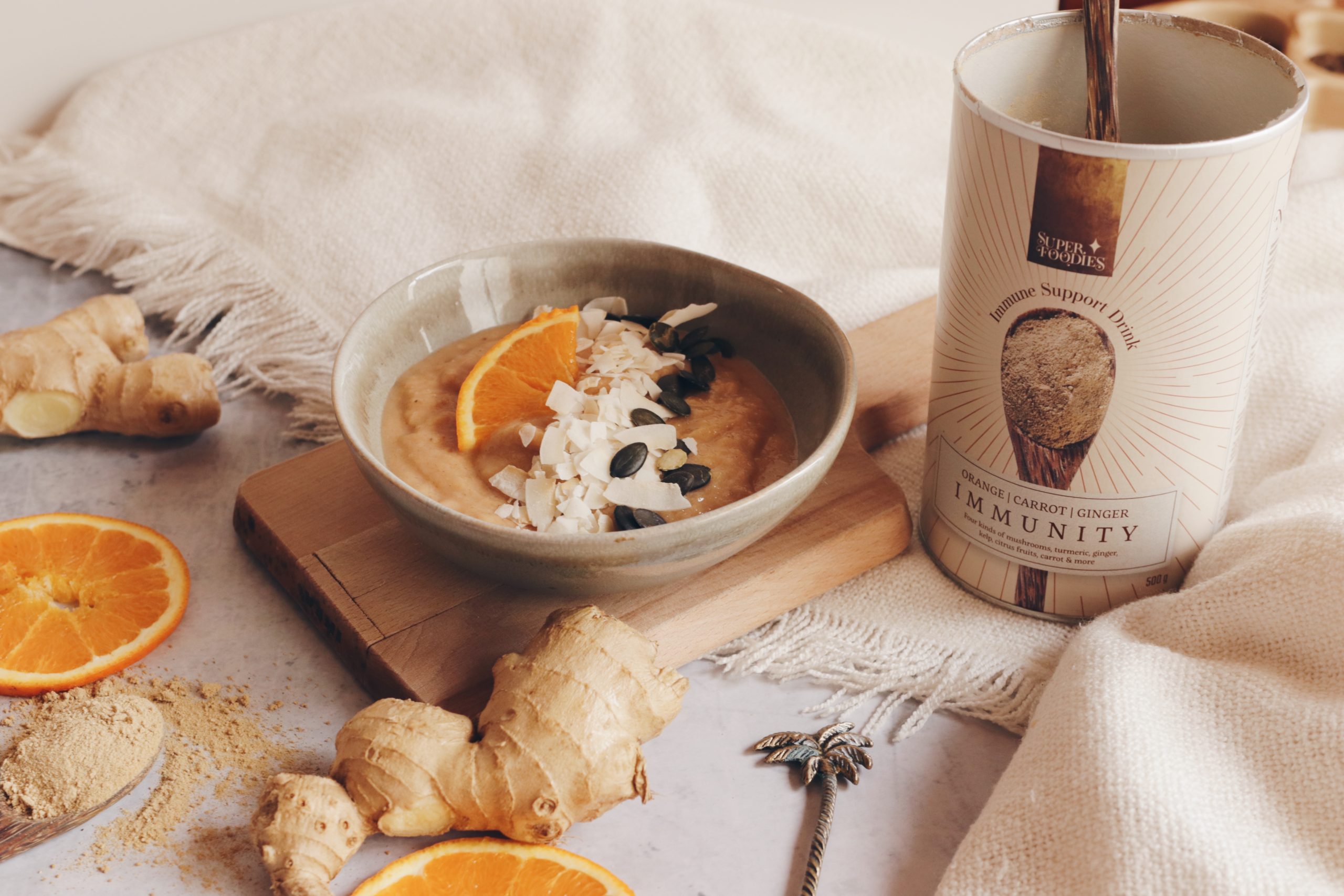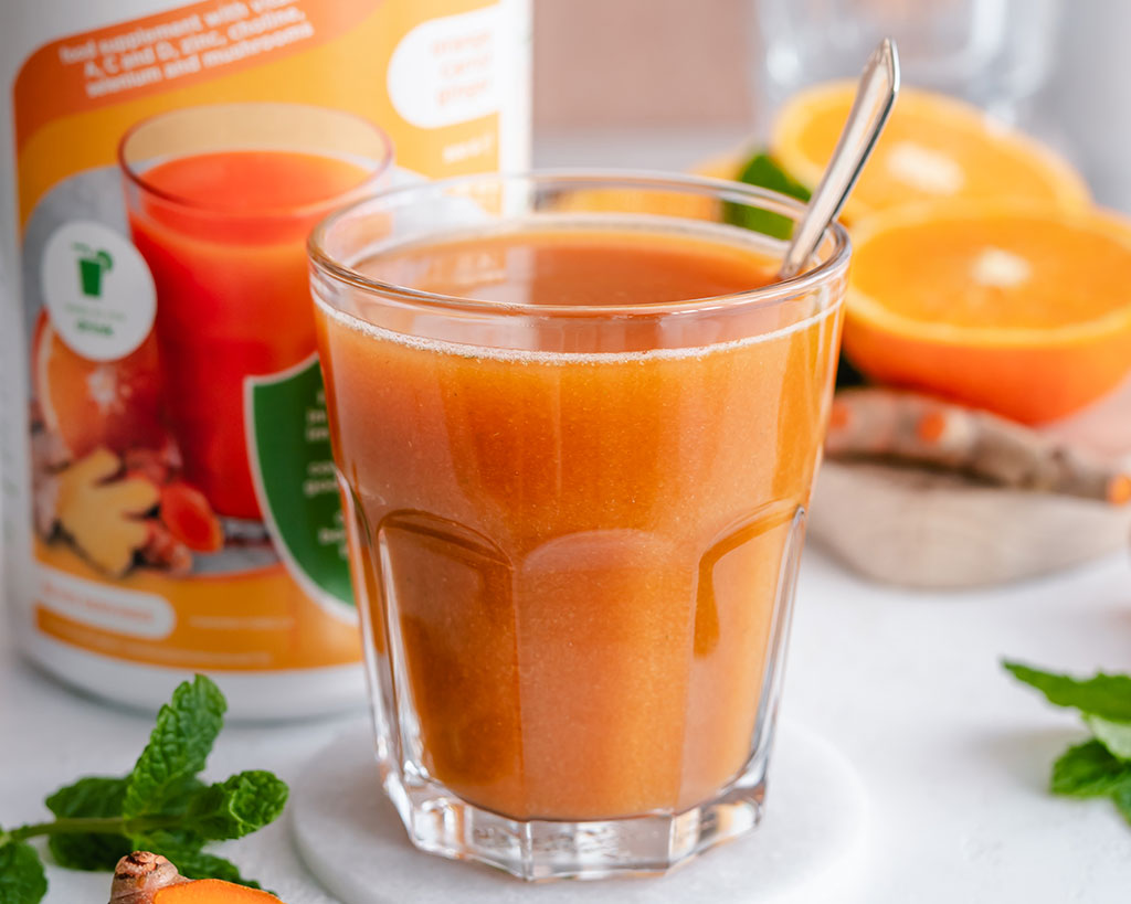 Zorg voor je immuunsysteem – mix deze sinaasappel-wortel-gember immunity support mix met water – het is HEERLIJK – belooft