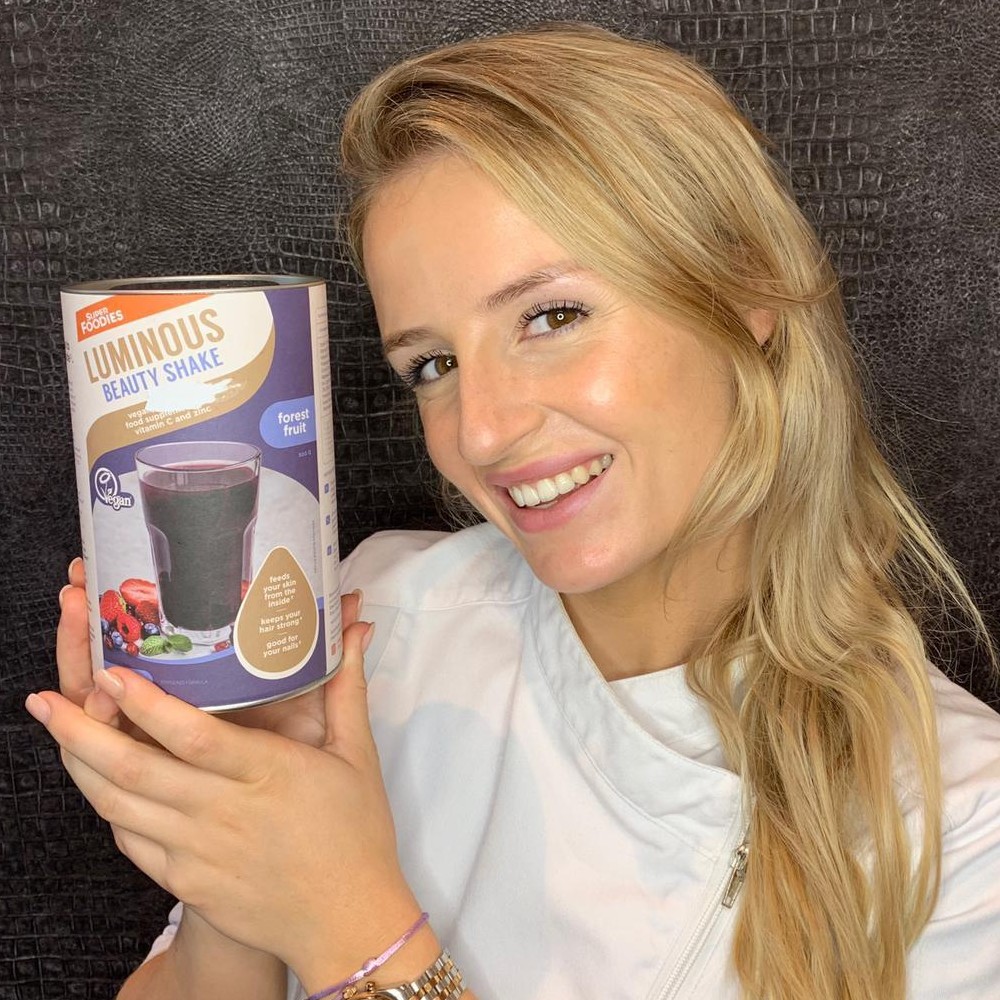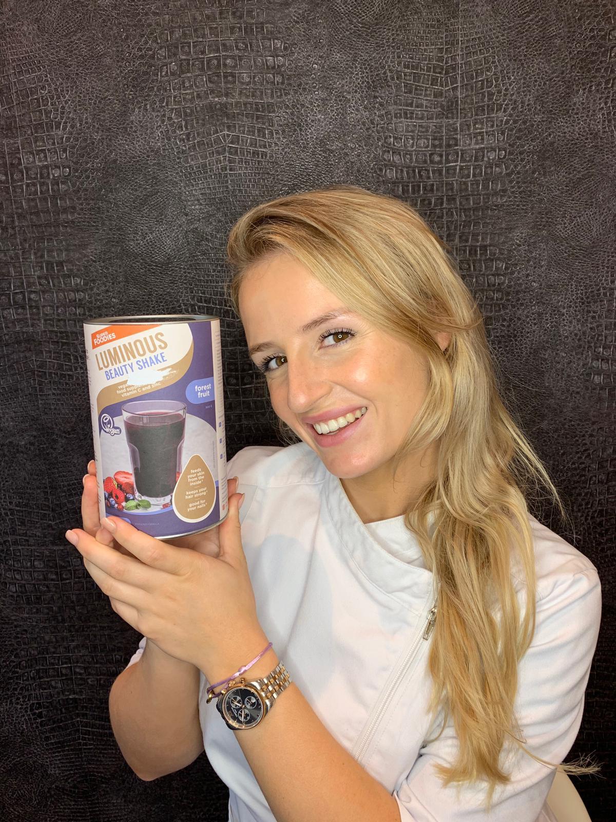 In de Luminous Beauty shake zitten (100% vegan) ingrediënten die de fibroblasten stimuleren nieuw collageen aan te maken. Als huidtherapeut ben ik altijd bezig met het optimaliseren van de huid. Voortaan adviseer ik naast mijn behandelingen ook de Luminous Beauty Shake voor een stralende huid, sterke nagels en haar.