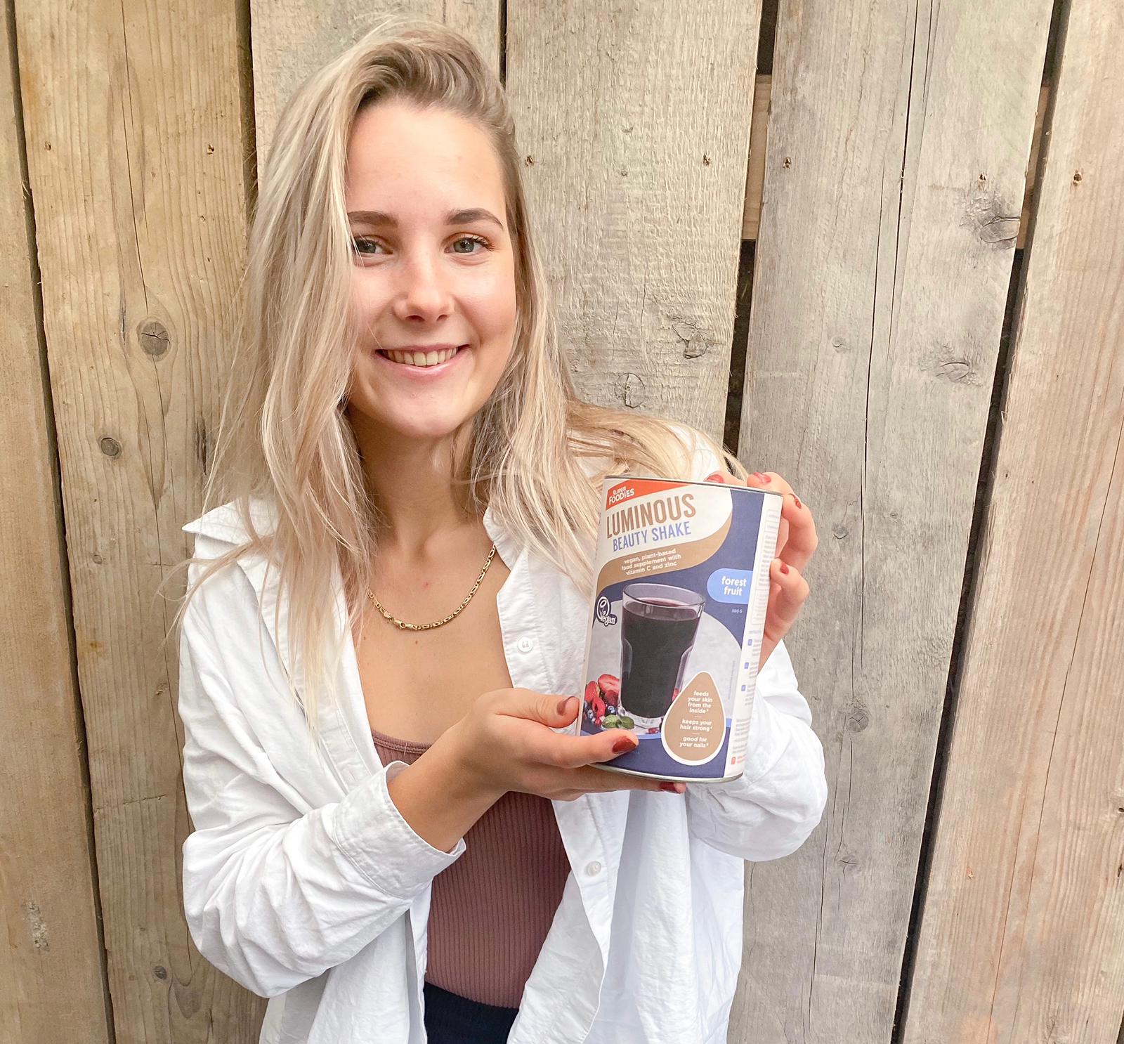 "De beauty shake Luminous gebruik ik nu ongeveer vier maanden. Door elke ochtend een glas Luminous te drinken ben ik minder moe, zit ik lekkerder in mijn vel en voel ik mij sterker, ofwel meer in balans. Het heeft mijn huid ook heel erg geholpen, zo ben ik eindelijk van mijn geirriteerde/rode huid af en voelt mijn huid veel zachter en straal ik echt! Het fijne van de shake is daarbij dat het erg gemakkelijk is in gebruik, ik neem het gewoon met een beetje water, roeren, klaar. Ik zou de shake aan iedereen aanraden, omdat het je een positieve boost geeft, mijn huid is nog nooit zo mooi en gezond geweest!.’’