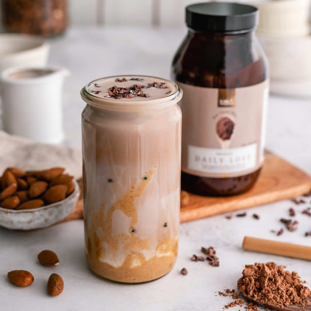 Of doe het net als de Maya, en drink je cacao met warme plantaardige drink of water. Bijvoorbeeld met Daily love. Een ready-to-drink cacaomix, gemaakt van rauwe cacao, MCT-olie, ashwagandha en heilzame paddenstoelen. Rijk aan magnesium, fosfor, kalium, koper, mangaan en vezels, en een bron van ijzer. Zo helpt Daily Love je lichaam met stress om te gaan en heeft het een positief effect op je levenslust.