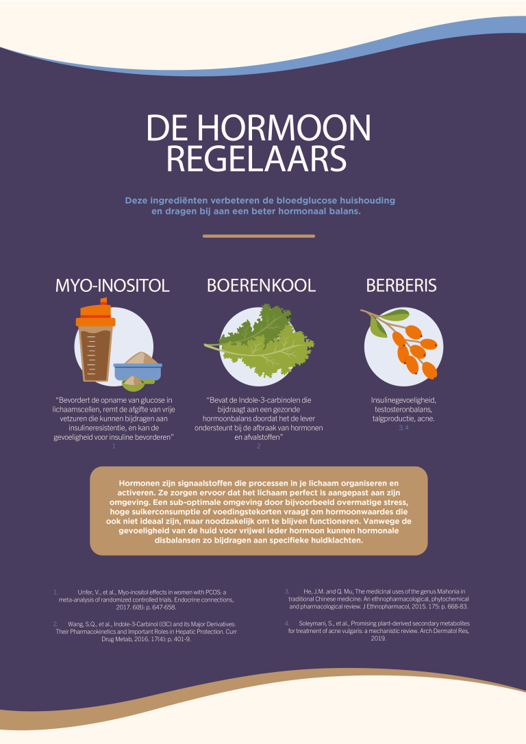 Je voedingspatroon en lifestyle zijn bepalend voor een goed werkend immuunsysteem, een gezonde hormoonhuishouding, een goede darmflora, voldoende slaap, minder stress en voor nog veel meer. En al deze factoren hebben op hun beurt weer invloed op de conditie van je huid. Wat zijn voedingsstoffen die je lichaam helpen naar een optimale hormoonhuishouding? Waardoor je niet alleen lekkerder in je vel zit, meer energie krijgt, maar zeker ook een stralende huid!