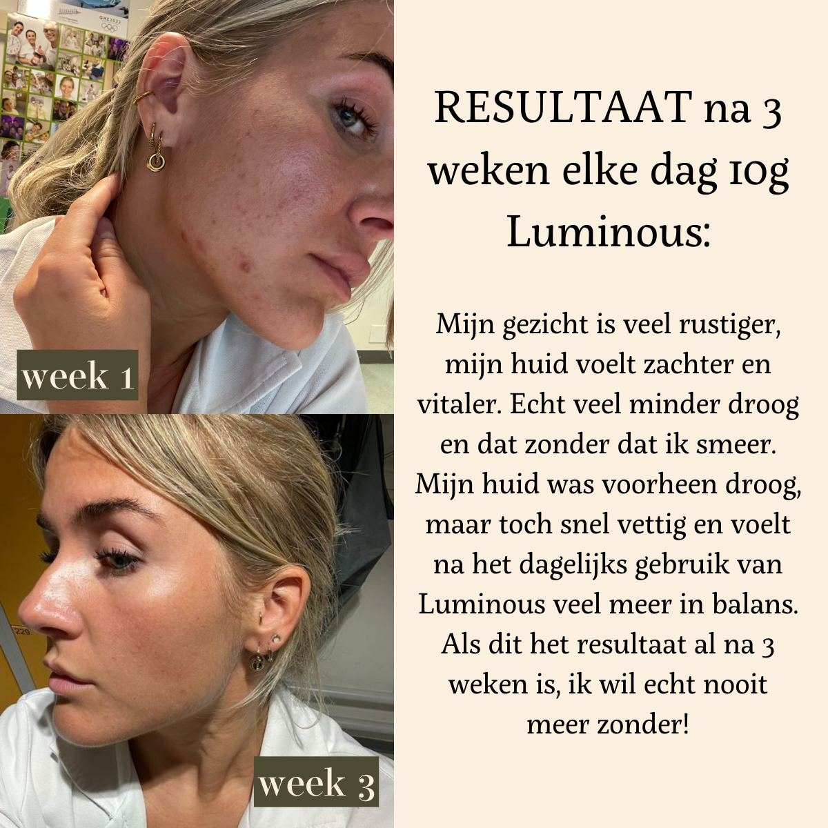 Ook kunnen de resultaten afhangen van leeftijd, hoe vaak je Luminous Beauty Shake gebruikt en in welke dosering, je voedingspatroon en levensstijl en eventuele onderliggende gezondheidskwesties.