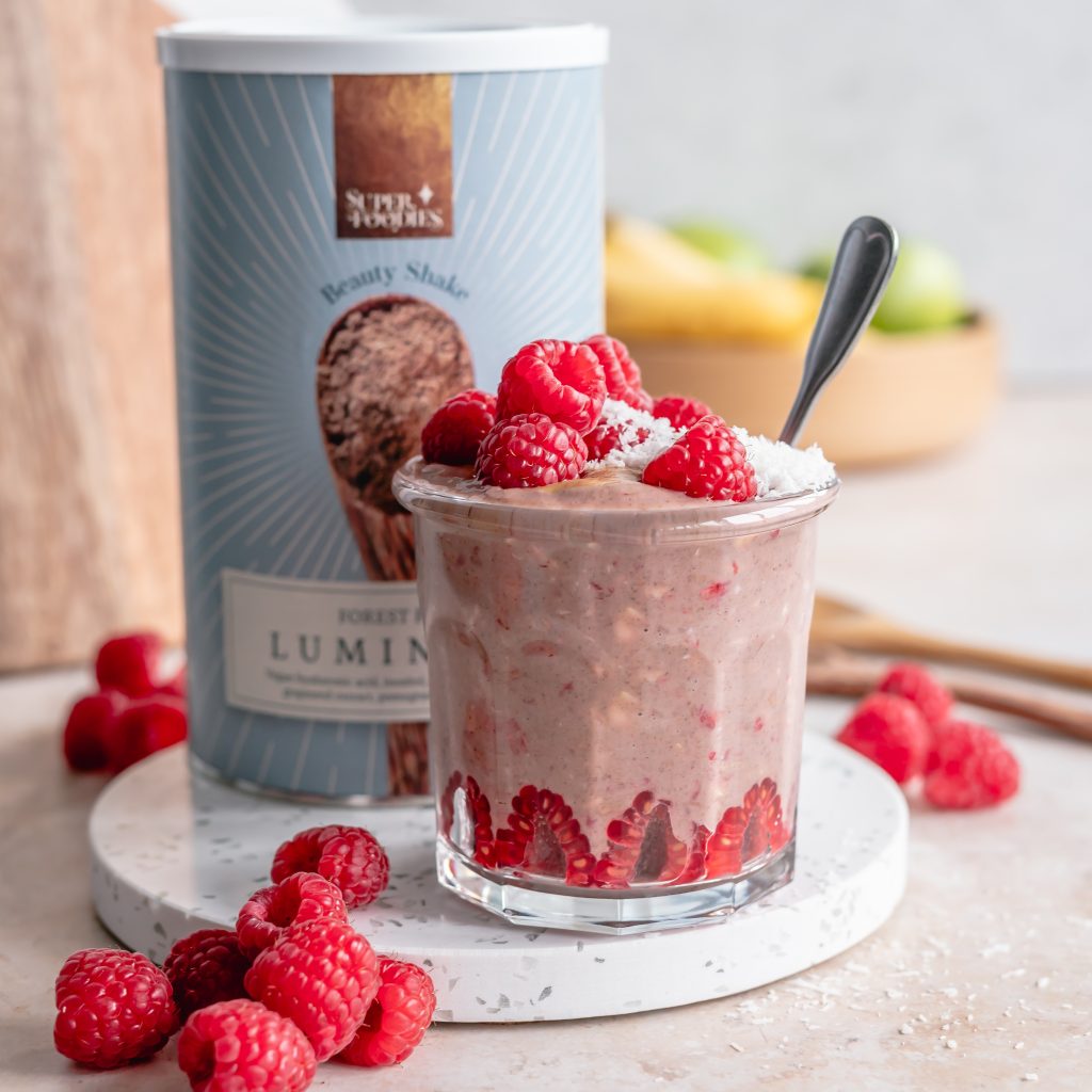 Dit ontbijtje is supergemakkelijk te maken en zorgt dat je de hele ochtend met volle kracht vooruit kunt. Het zit namelijk vol met gezonde vetten (door de notenboter), eiwitten (via het hennepzaad) en gezonde slow koolhydraten (van de havermout). Maar ons geheime ingrediënt is de Luminous Beauty Shake van Superfoodies.